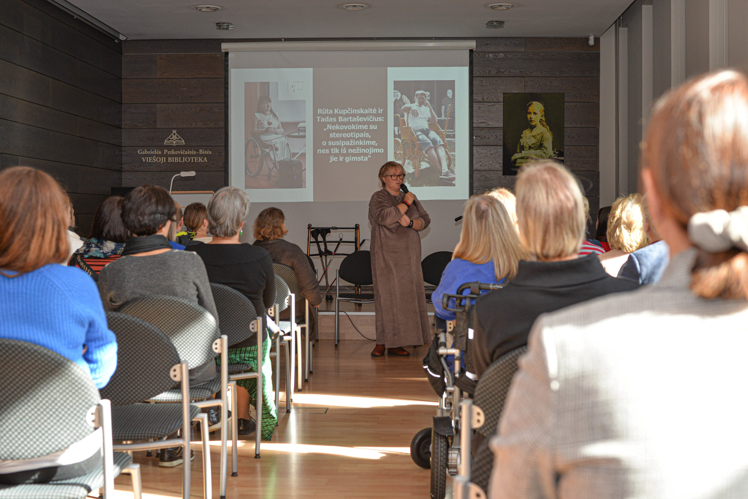 Panevėžio apskrities G. Petkevičaitės-Bitės viešojoje bibliotekoje vyko patyriminis kampanijos „Atrask galimybes“ renginys – per konkrečių negalios ištiktų žmonių pavyzdžius liejosi įkvepiančios gyvenimo istorijos, lūkesčiai ir poreikiai, skleista žinia apie asmeninio asistento pagalbos galimybes.