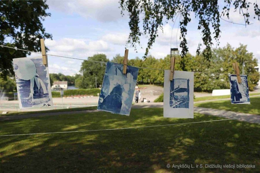 Liepos 27-ąją, pirmosios Anykščių miesto šventės dienos popietę, Anykščių L. ir S. Didžiulių viešosios bibliotekos terasoje vyko cianotipijos atvirukų gamybos dirbtuvės, kurias vedė Bibliotekos kultūrinės veiklos vadybininkė Indrė Rukšaitė kartu su naująja savanore Lina Bliudžiute.