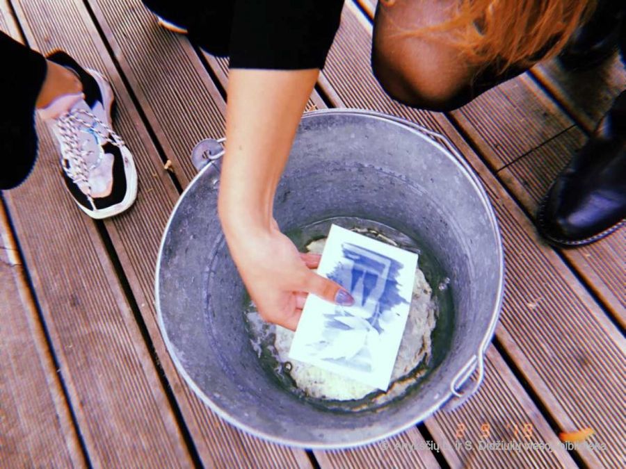 Atvaizdams išgauti buvo panaudoti augalai ir keletas atrinktų fotografo Izidoriaus Girčio negatyvų. Iš pasirinktų elementų reikėjo sudėlioti norimą kompoziciją, tuomet ją prispausti stiklo rėmeliu ir palaikyti prieš saulę. Po „saulės vonių“ atvirukas išimamas iš po stiklo ir išplaunamas vandenyje – geltonumas nusiplauna ir ant popieriaus išryškėja mėlyni atspalviai. Taip kiekvienas dirbtuvių dalyvis pasigamino vienetinių rankų darbo fotografinių atspaudų.