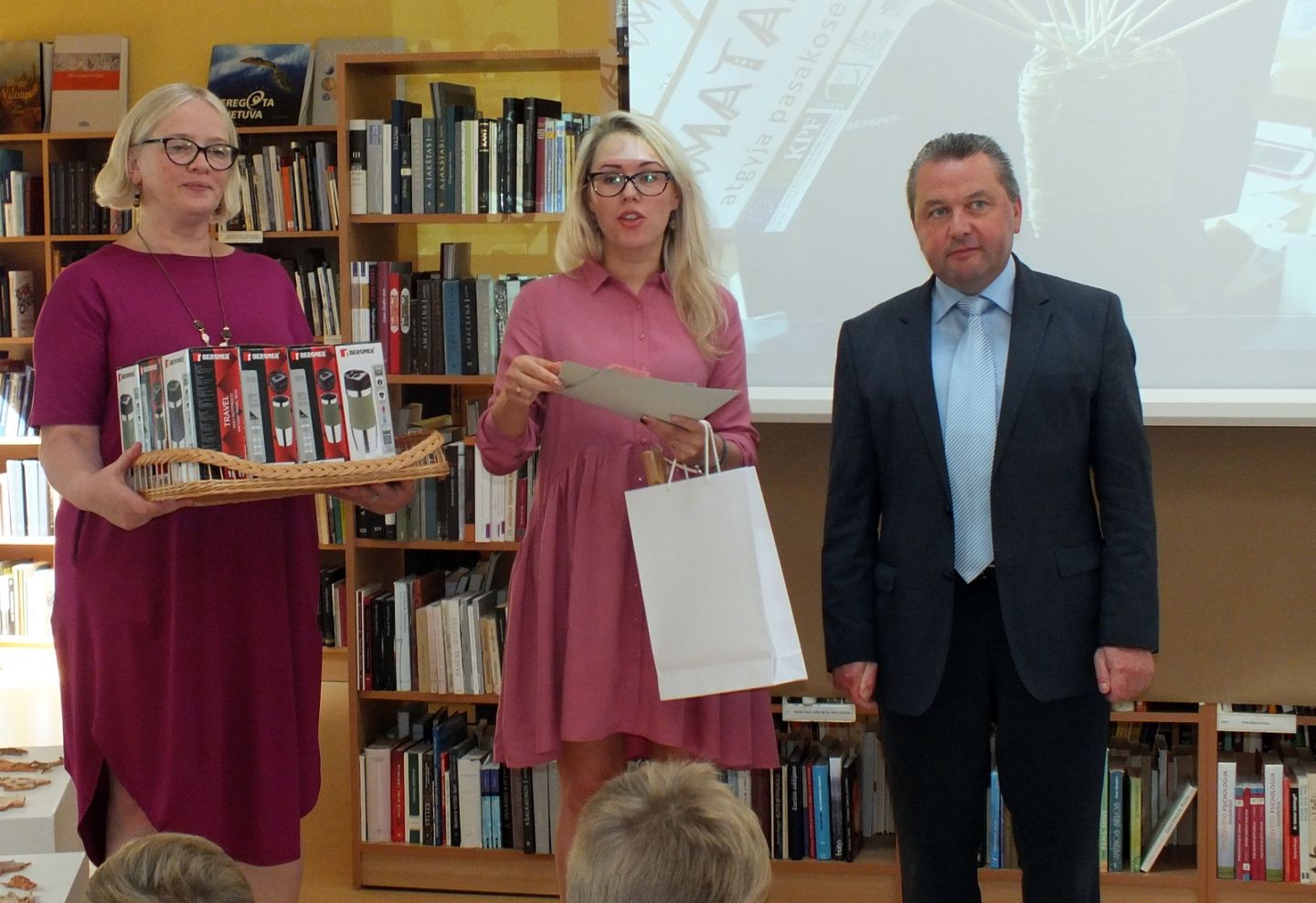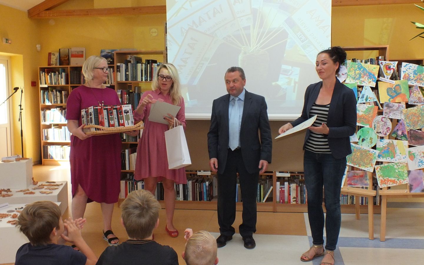 Mero pavaduotojas kartu su bibliotekos direktoriaus pavaduotoja Vida Sekoniene įteikė padėkas visiems projekte dirbusiems savanoriams (Elzei, Erikai, Danieliui, Livetai, Godai, Deimantei, Emilijai, Kamilei, Skirmantei, Ernestai, bibliotekos savanorėms Nadiai ir Katiai), taip pat dėkota stovyklų organizavimui paramą suteikusiai rajono įmonei UAB „Legra“.