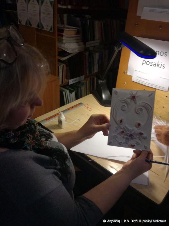 Šios technikos mūsų bibliotekos skaitytojus mokino Ona Satkūnienė. Visiems pavyko pasigaminti, tiek mažesniems, tiek ir vyresniems.