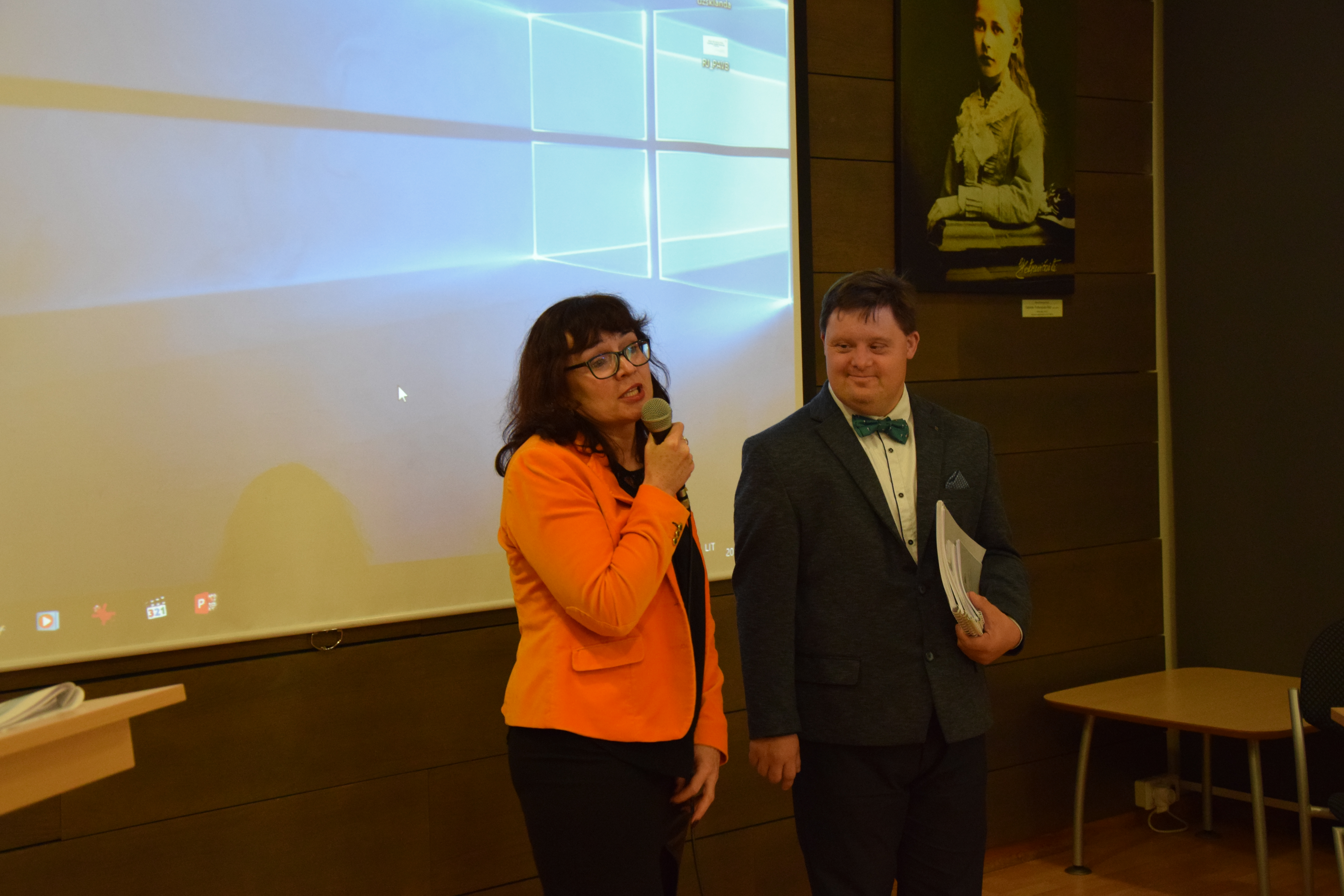 Panevėžio jaunuolių dienos centro direktorė Lina Trebienė pristatė šio centro lankytoją Dimą Burlak, turintį intelekto negalią. Dima dalinosi patarimais, kaip biblioteka galėtų tapti draugiškesnė pasitelkiant daugiau vizualizacinių priemonių. Kartu su centro direktore demonstravo knygas su piktogramomis, kurios vaizdžiai paaiškina intelekto negalią turinčiam asmeniui apie knygos turinį, ir kvietė į bibliotekos fondą įtraukti skaitinių, pritaikytų intelektinę negalią turintiems gyventojams. Seminaro dalyviai turėjo galimybė sudalyvauti Panevėžio jaunuolių dienos centro lankytojų surengtoje gausioje rankdarbių mugėje, kurioje taip pat buvo vaišinami pačių centro lankytojų virta solidarumo kava.