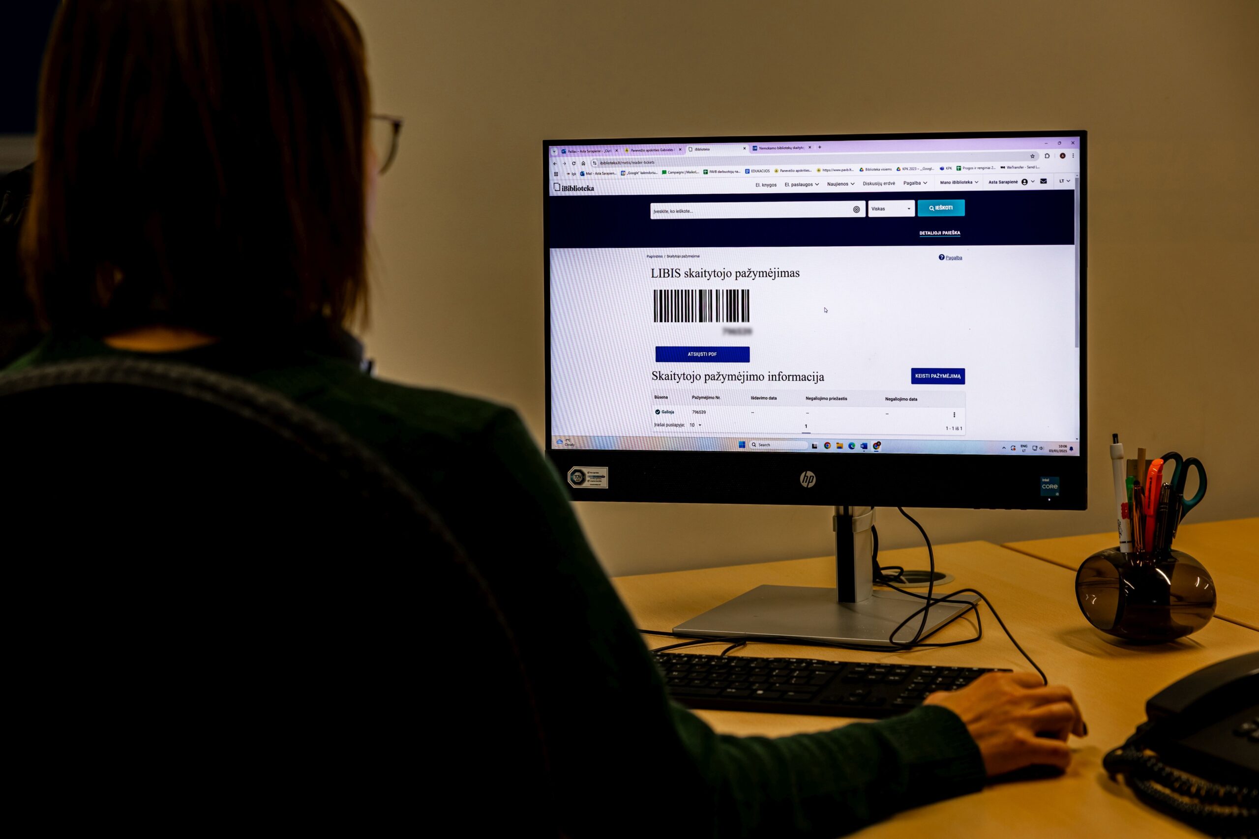Kai biblioteka patvirtins duomenis, elektroninį skaitytojo pažymėjimo numerį ir brūkšninį kodą matysite savo paskyroje.
