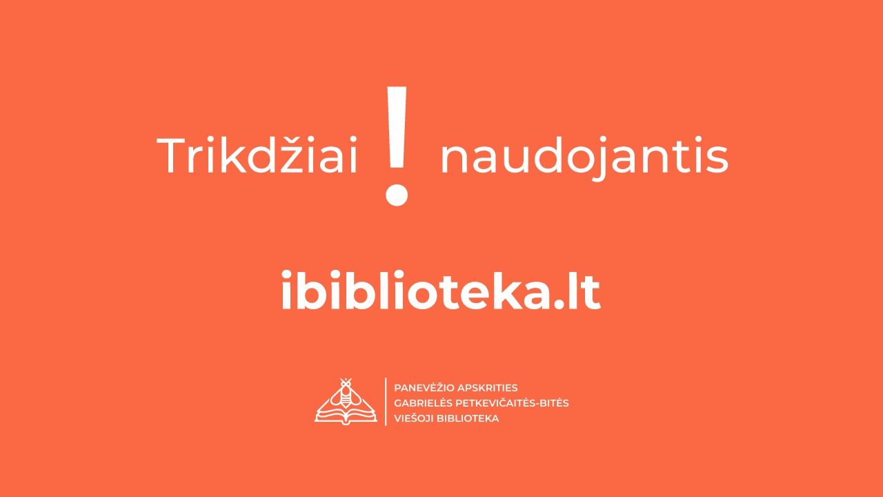 Nuo spalio 27 d. iki lapkričio 2 d. vyks bibliografinių įrašų naujinimo darbai. Šiuo laikotarpiu portalo ibiblioteka.lt veikla gali būti ribota, todėl atliekant paiešką kataloge galite nematyti kai kurių leidinių. Jei ieškomo leidinio nerastumėte – kreipkitės el. paštu abonementas@pavb.lt arba į bibliotekininką bibliotekos darbo metu.