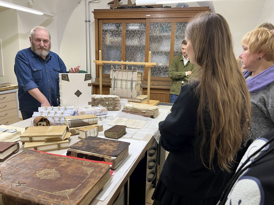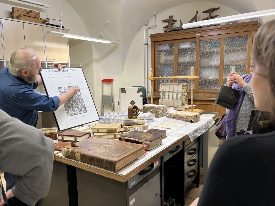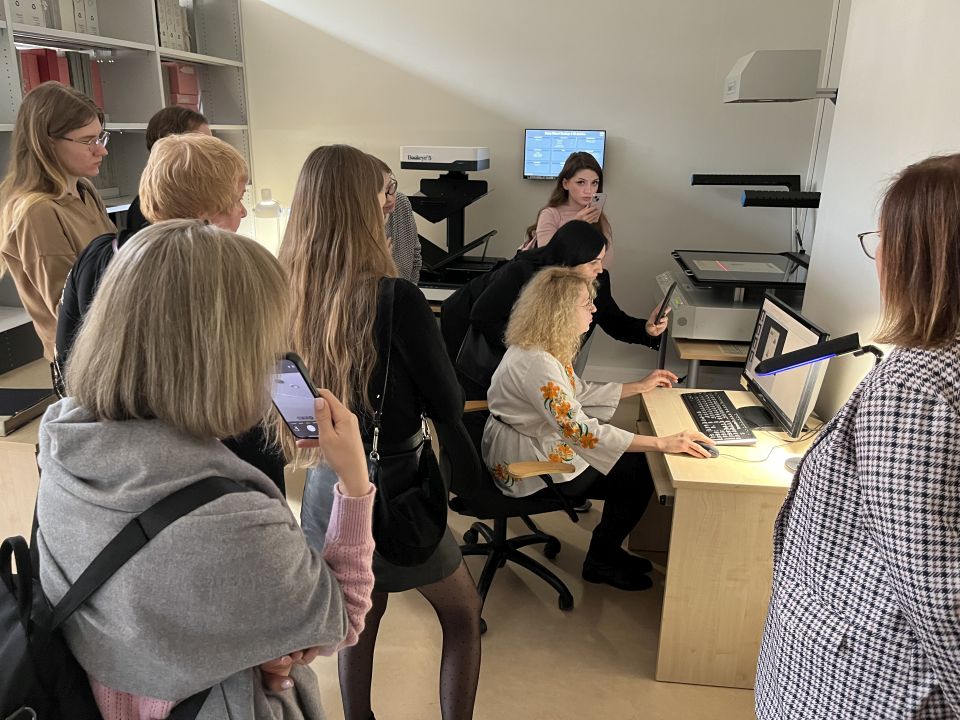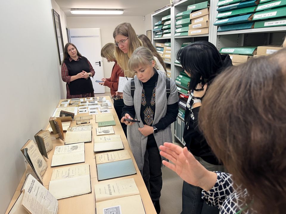 Svečiai domėjosi, kaip saugomi retieji leidiniai, kokie dokumentai įtraukti į fondą ir kaip formuojama Panevėžio regiono spaudos istorija.