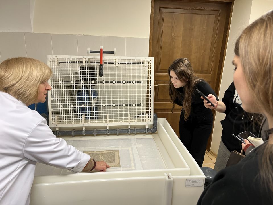 Dalyviai viešėjo Kaune, kur gilino profesines žinias ir praktinius įgūdžius dokumentinio kultūros paveldo srityje – buvo supažindinti su Senosios knygos ekspozicija, buvusiuose Pramonės, prekybos ir amatų rūmuose įsikūrusios Ąžuolyno bibliotekos, kaip UNESCO paveldo objekto, erdvėmis, Kaunistikos grupės fondais.