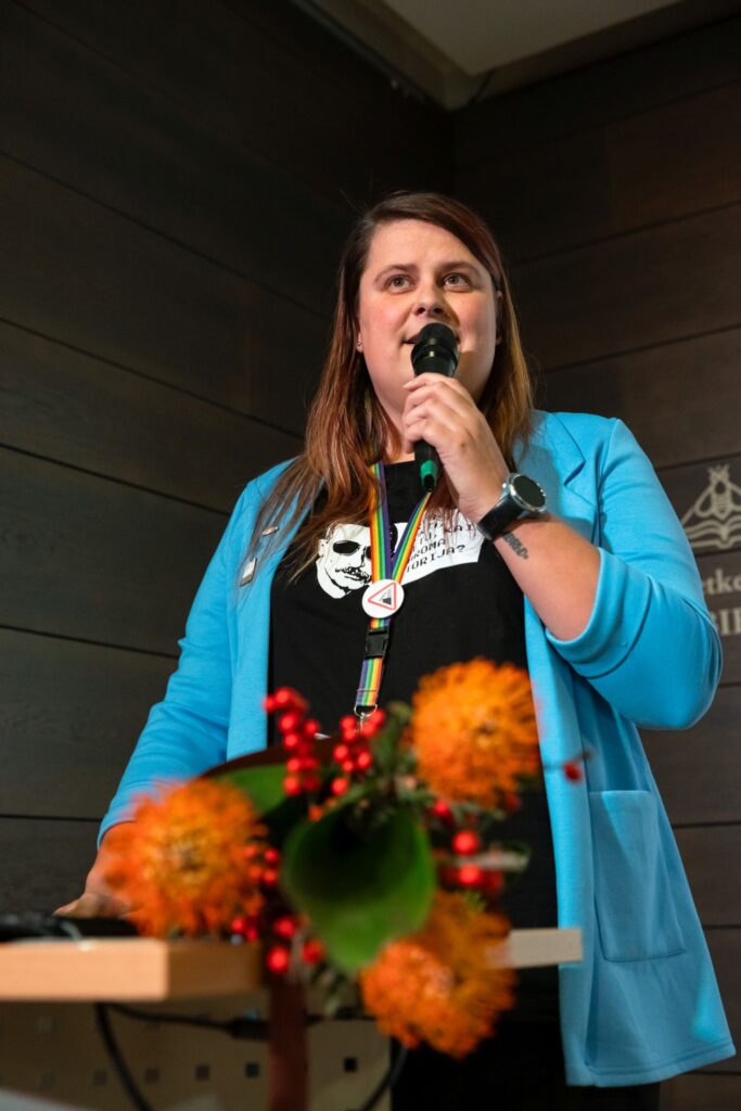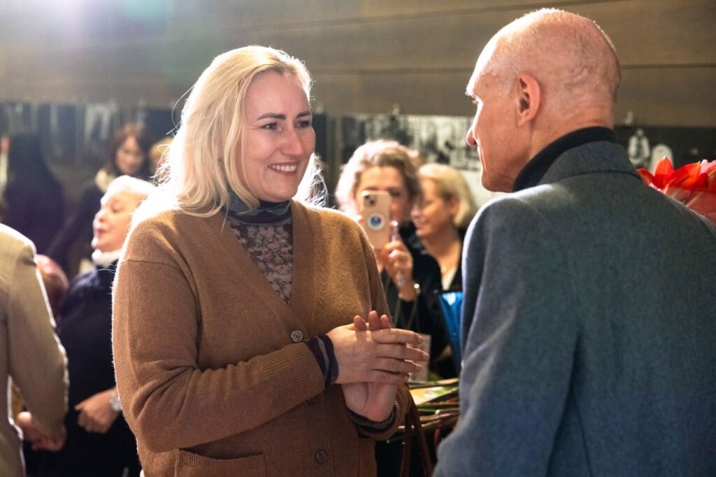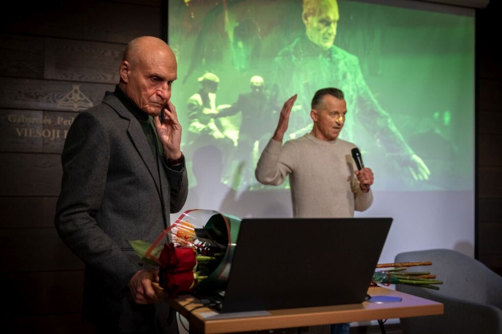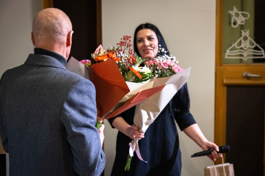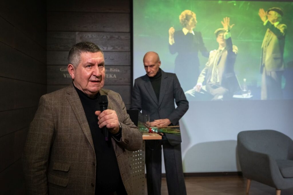 „Tai apdovanojimas už talentą, bet dar labiau – laikyseną. Už tą ypatingą tylą, kuri jūsų vaidmenimis pasako daugiau negu ilgi monologai. Jūsų balsas, žvilgsnis, pauzės kuria erdvę mąstyti ir jausti. Jūsų kūryba pilna prasmės, čia telpa žmogus, laikas ir tiesa. Nacionalinės kultūros ir meno premija atitenka ne tik meistrui, bet ir tam, kas moka būti scenoje be triukšmo, su pagarba žiūrovui ir su giliu pasitikėjimu teatru. Ačiū už tai, kad esate autoritetas, auginate Lietuvos teatrą ir labai ryškų pėdsaką Lietuvos kultūroje”, – sakė bibliotekos direktorė Greta Kėvelaitienė.