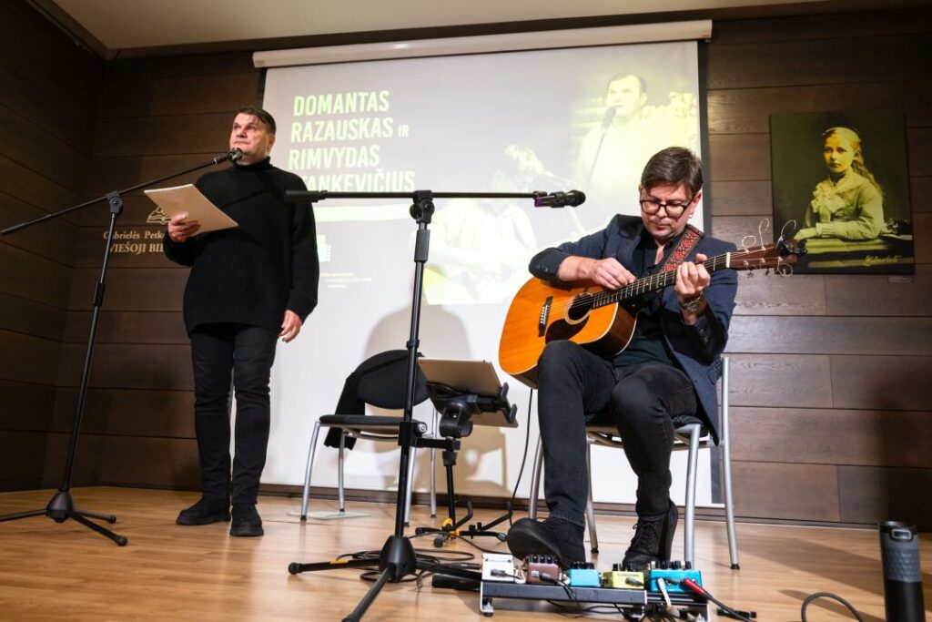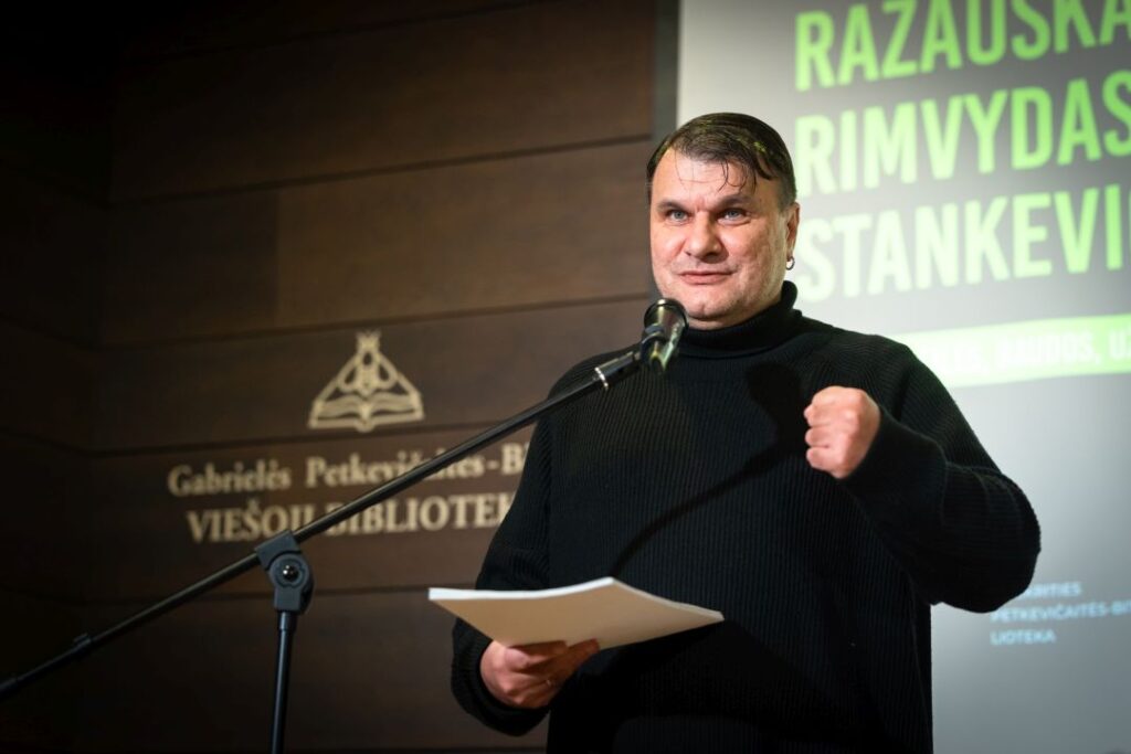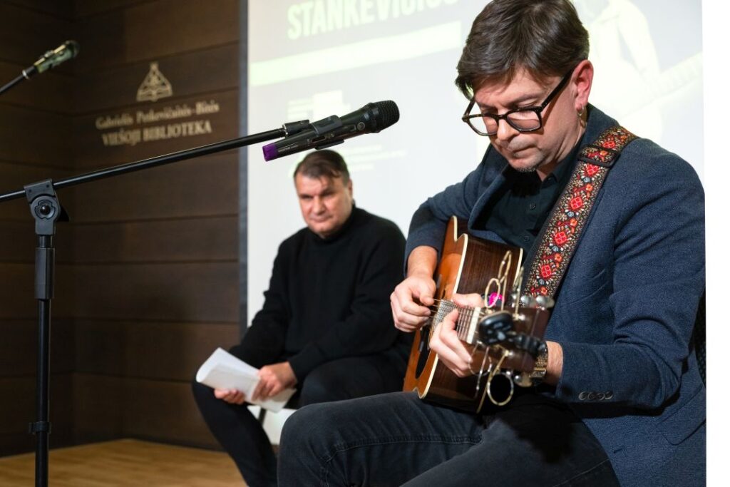 „Iki ašarų gražu, kai jūs netelpate salėje, – sakė poetas Rimvydas Stankevičius, pradėdamas Panevėžio apskrities Gabrielės Petkevičaitės-Bitės viešojoje bibliotekoje vykusį savo ir poeto, dainų autoriaus, atlikėjo Domanto Razausko muzikos ir poezijos vakarą. – Šiandien jūsų laukia žodžiai, muzika, meditacija, kad galėtumėte atsipalaiduoti, kelis metrus pakilti virš žemės. Nors pradėti noriu nuo dviejų dalykų: pirma, mano bičiulis Albinas Kėleris. Turbūt džiaugiuosi labiau netgi už jį patį, kad gavo Nacionalinę kultūros ir meno premiją. PAGALIAU! (jeigu vienu žodžiu). Antra – tiems, kas buvo pastarajame susitikime bibliotekoje. Buvo juodas periodas, kadangi išėjo artimi mano žmonės. Tačiau pažadėjau: jeigu smarkiai plosite, jau kitądien spaudai atiduosiu naujausią savo poezijos knygą. Plojote stipriai – nunešiau. Ir štai – šiandien ji mano rankose. Pavadinta „Kartais sninga juodai” – iš jos daugiausia ir skaitysiu”.