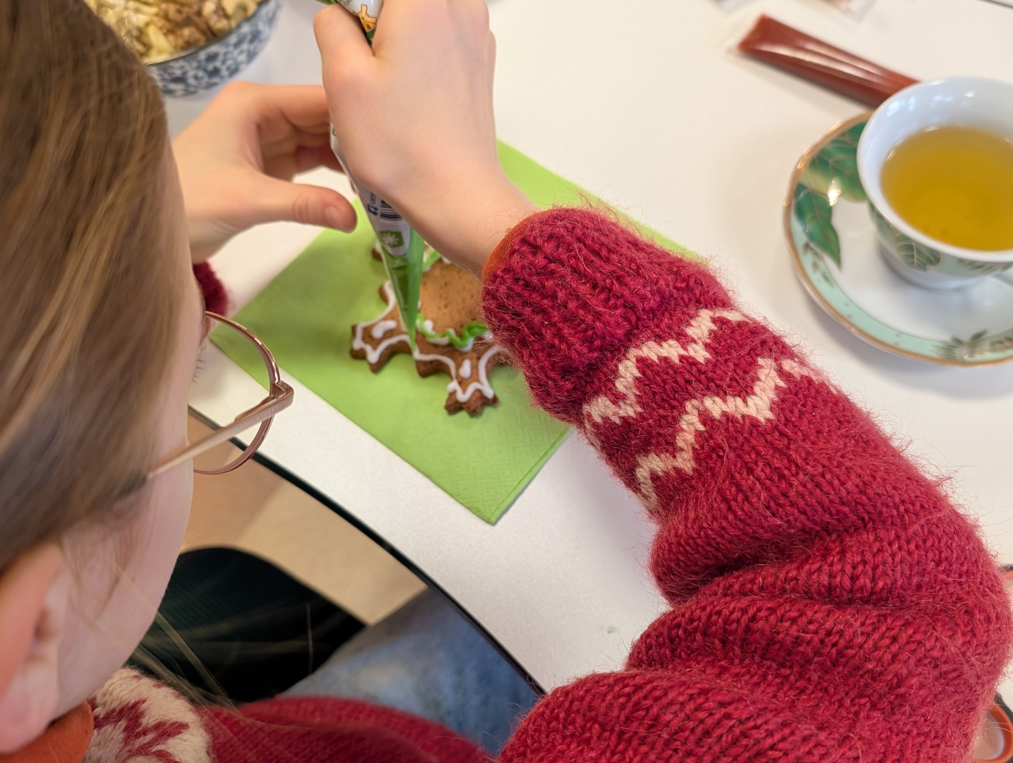 Kalėdinių sausainių dirbtuvėse vaikai kūrė spalvingus piešinius, kruopščiai derino pabarstukus, drąsiai eksperimentavo. Įvairiausios figūrėlės greitai virto spalvingais autoriniais darbais, o kiekvienas sausainis tapo mažyte istorija. Spalvingos glazūros lašėjo ne tik ant sausainių, bet ir į vaikų vaizduotę, skatindamos kūrybiškumą, kantrybę ir pasitikėjimą savimi. Tai buvo popietė, kurioje svarbiausia ne rezultatas, o pats kūrybos džiaugsmas, buvimas kartu ir šventinės nuotaikos dalijimasis gurkšnojant vingiorykštės arbatą. Dalis kūrėjų, visiškai kaip profesionalų pleneruose, paliko savo darbų bibliotekai – jūsų, brangieji lankytojai, akių džiaugsmui.