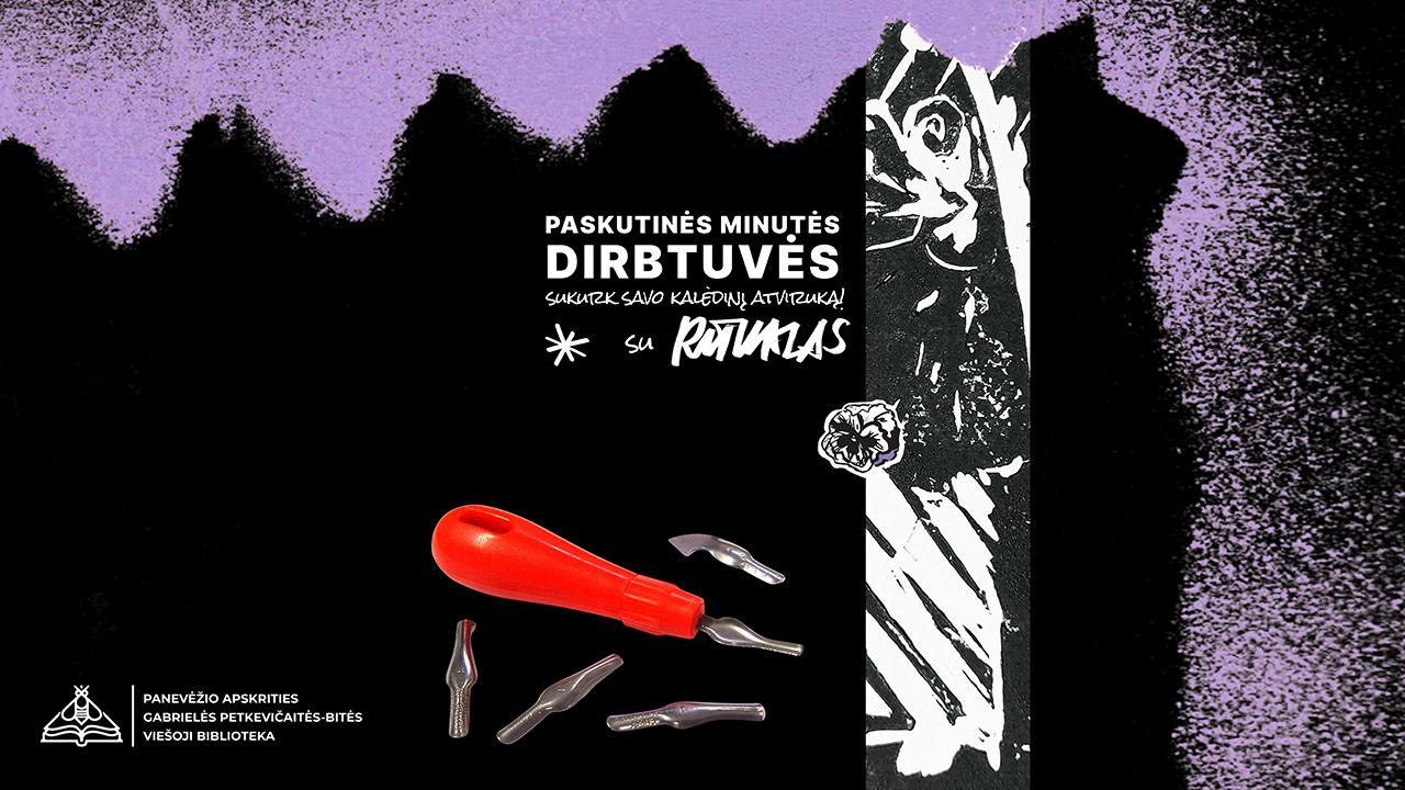 Gruodžio 15 d. 16 val. Panevėžio apskrities Gabrielės Petkevičaitės-Bitės viešosios bibliotekos Atviroje jaunimo erdvėje vyks linoraižinio dirbtuvės LAST MINUTE XMAS CARD su dizainere Rita Raziūnaite. Jose kiekvienas galės pasigaminti savo paskutinės minutės kalėdinį atviruką.