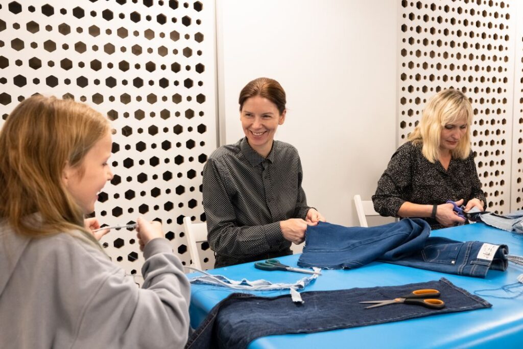 Su Milda Paukšte atnaujindami džinsinę tekstilę mokėsi suteikti drabužiams antrą šansą. Bendradarbiaudami su Panevėžio mokymo centro specialistais įgijo praktikos, leidžiančios prailginti kasdienių drabužių tarnavimo laiką.