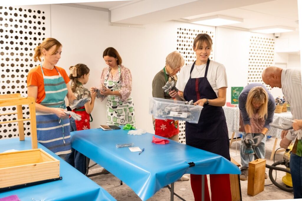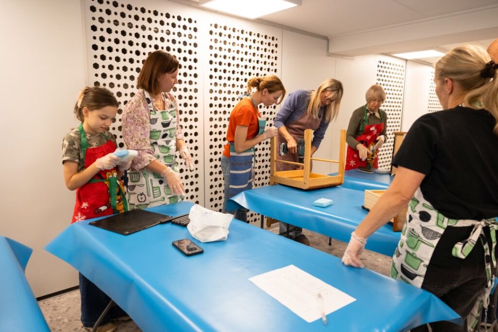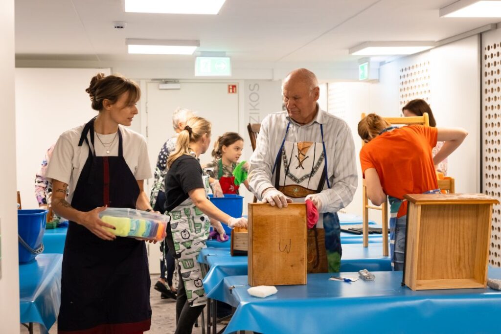 Panevėžiečiams buvo sudarytos galimybės išbandyti baldų atnaujinimą, suteikti naują veidą medinėms kėdėms, lentynėlėms ir kitiems smulkiems baldams (neturintys savo baldo dirbtuvėms rinkosi KEISK’is stotelėje), susipažinti su ekologiškomis dažymo medžiagomis, išgirsti ilgaamžės priežiūros patarimų.