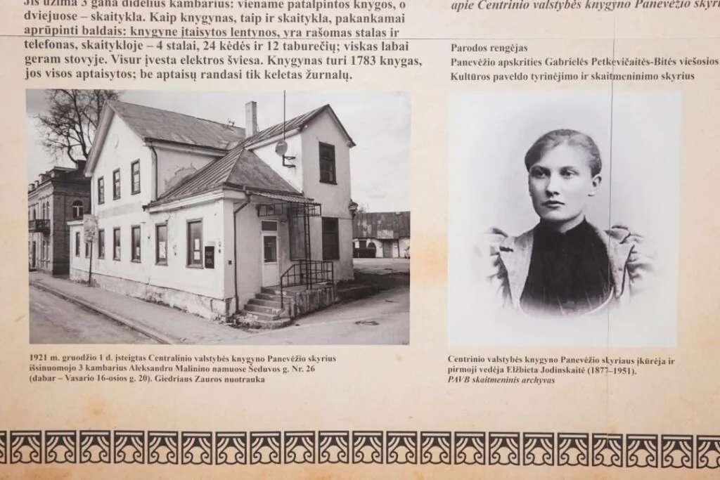 „Biblioteka šiemet mini 105-uosius metus. Saugome ne tik atmintį apie tarpukariu mieste veikusią biblioteką, bet ir dalį jos fonduose buvusių leidinių. Kviečiame į kelionę, kurioje laukia pažintis su bibliotekos amžininkėmis – 1921 metais išleistomis knygomis. Jos saugomos mūsų retų knygų fonde. Tarp parodoje eksponuojamų leidinių – ir keliolika, pažymėtų antspaudu „Centr. Valst. Knygynas. Panevėžio Skyrius”. Tai liudija jų priklausomybę tuomečiam Valstybinio centrinio knygyno Panevėžio skyriui (taip anuomet vadinosi mūsų biblioteka”, – sako Kultūros paveldo tyrinėjimo ir skaitmeninimo skyriaus vyr. bibliotekininkė Ilona Mažylytė.