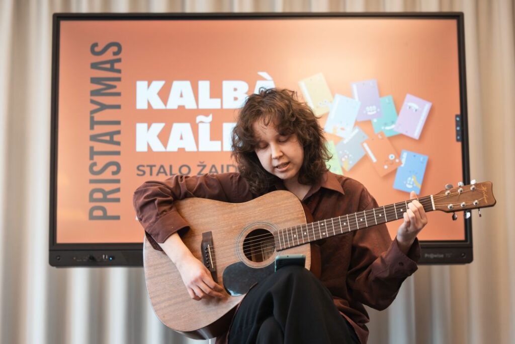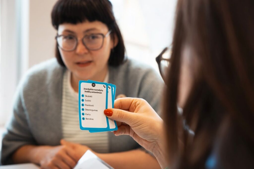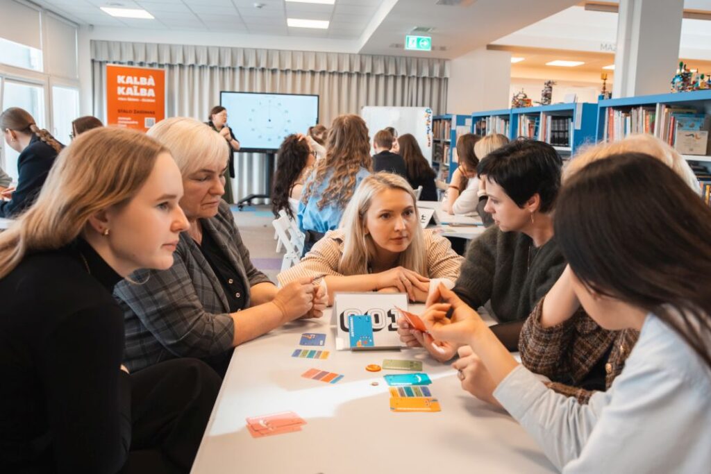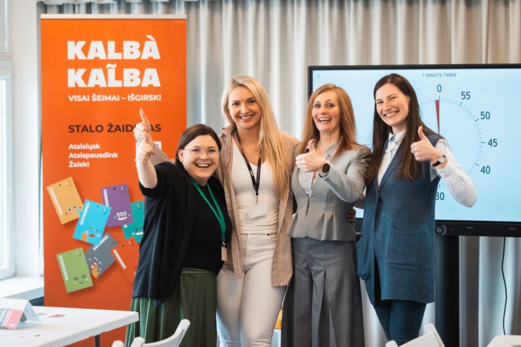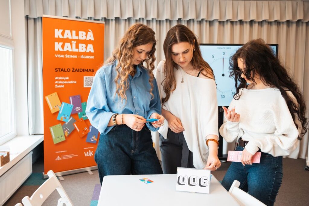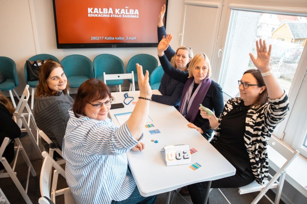 Panevėžio apskrities Gabrielės Petkevičaitės-Bitės viešosios bibliotekos Vaikų ir jaunimo kultūrinės edukacijos skyriuje pristatytas bibliotekos sukurtas lietuvių kalbos stalo žaidimas „Kalbà kal̃ba“.