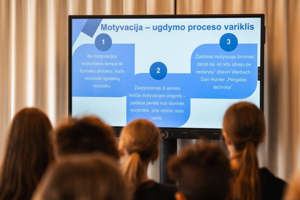 „Dažnai mokymasis virsta pareiga, rutina, o kartais net našta. Kuo daugiau informacijos turime, tuo mažiau pritaikome praktikoje. Gyvename dinamiškoje, nuolat kintančioje visuomenėje, mokiniams vis sunkiau išlaikyti dėmesį ir motyvaciją, įsitraukti į ugdymosi procesą. Tradiciniai mokymo metodai vis dažniau patiria iššūkių, todėl ieškome būdų, kaip mokymą paversti prasmingu ir įdomiu. Vienas sprendimų ir yra žaidimas. Žaidybinimas – ne madinga sąvoka, o viena iš galingiausių ugdymo priemonių norint pasiekti mokinį, užtikrinti gilesnį žinių įsisavinimą,“ – įsitikinusi N. Antanaitienė.