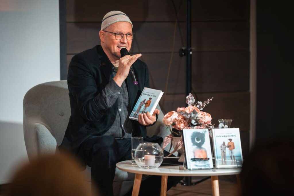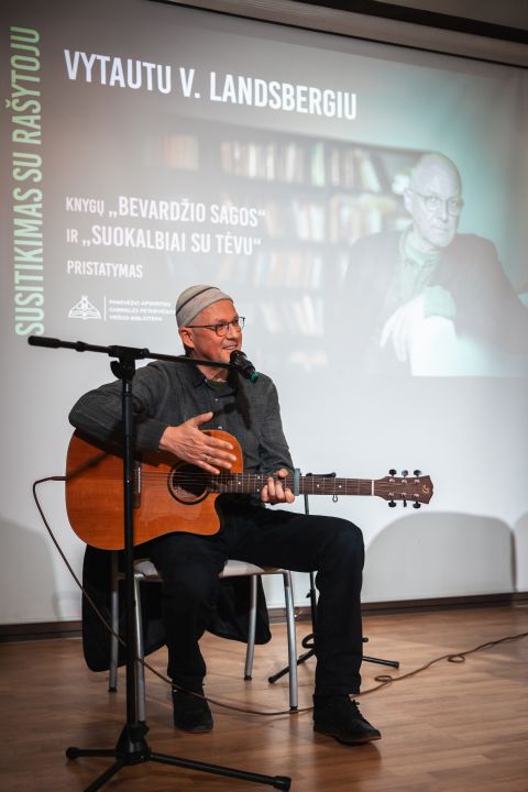 Kai kurie (galbūt tik patys geriausi) susitikimai virsta terapija ir gyvenimo apmąstymais. Būtent toks vakaras nutiko Panevėžio apskrities Gabrielės Petkevičaitės-Bitės viešojoje bibliotekoje, kur dvi knygas – „Suokalbiai su tėvu” ir „Bevardžio sagos” – pristatė rašytojas, publicistas, visuomenės veikėjas, režisierius, dainuojamosios poezijos atlikėjas Vytautas V. Landsbergis.