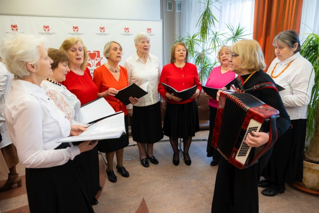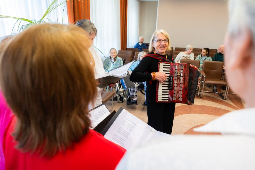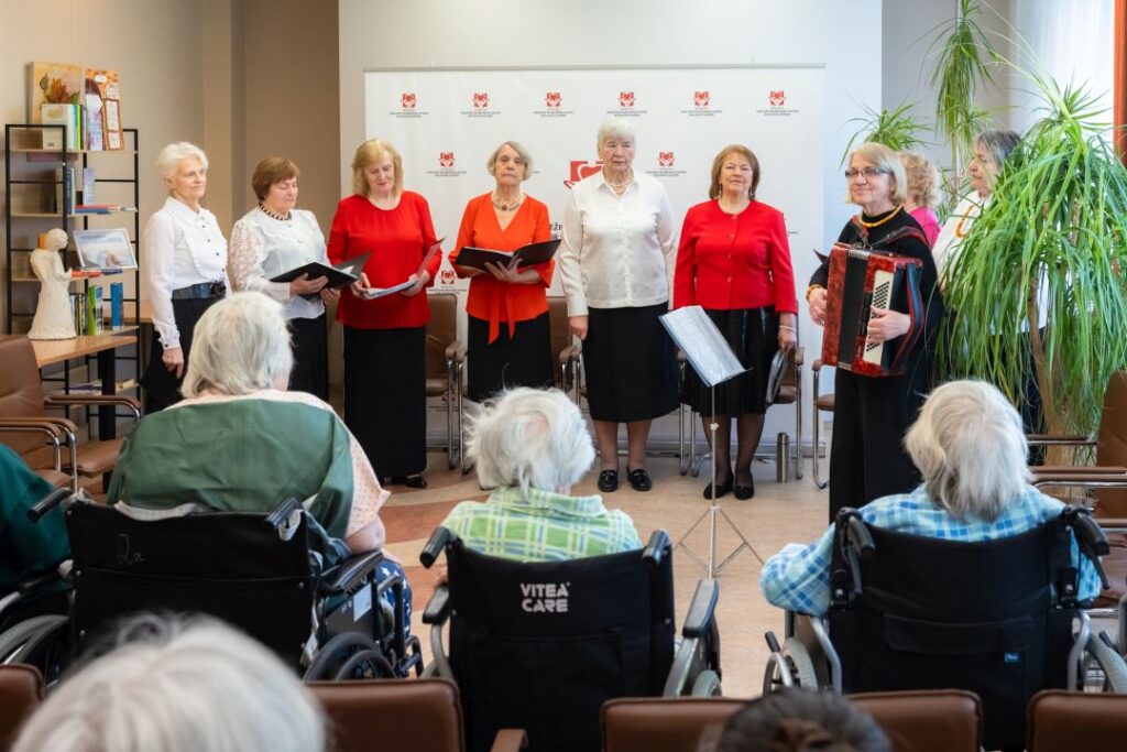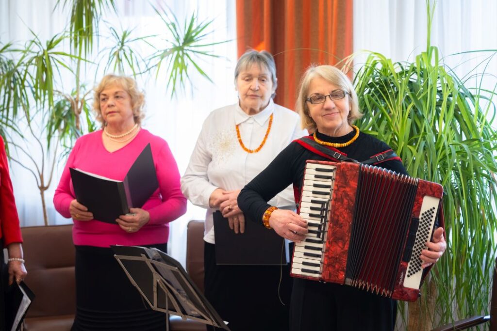 Įstaigų bičiulystės proga į ligoninę vyko ir bibliotekos senjorų klubo „Šiltos akimirkos“ muzikos grupė – atliko muzikinę programą.