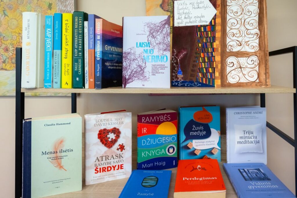 Į pirmąją knygų lentyną biblioteka atrinko grožinės literatūros leidinių, knygų apie ramybę. Vėliau spektras plėsis – ketinama pasidalinti leidiniais apie empatiją ir bendravimą, komandinį darbą, psichologinę sveikatą, naujesnėmis medicinos knygomis. Lentyna bus periodiškai atnaujinama atsižvelgiant į ligoninės darbuotojų lūkesčius ir pageidavimus.