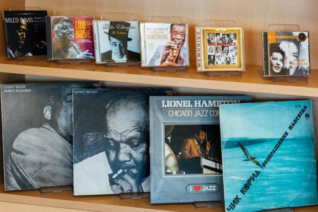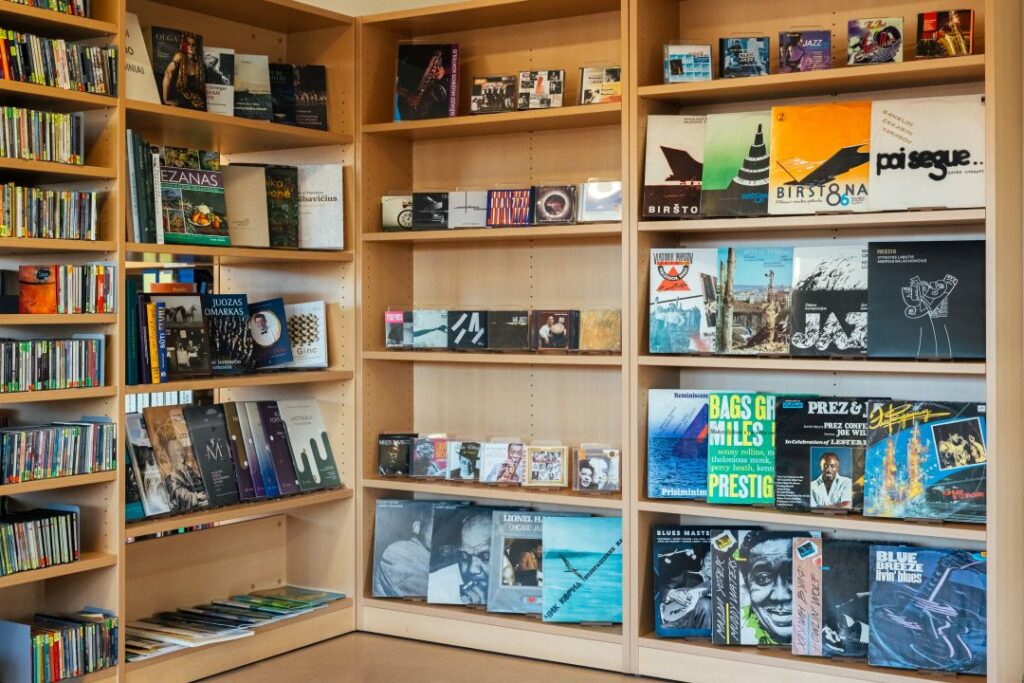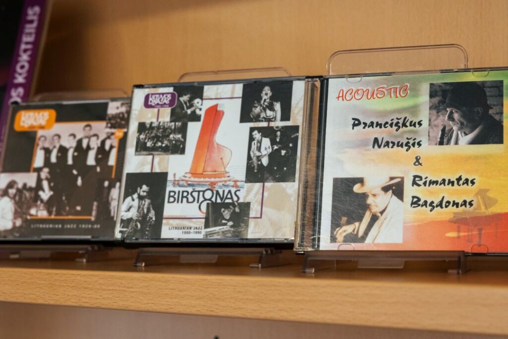 Vinilo plokštelės ir kompaktiniai diskai kviečia prisiminti ir klausytis Lietuvos džiazo atlikėjų – Vladimiro Čekasino trio, Petro Vyšniausko, Kęstučio Lušo, Gintaro Abariaus, Skirmanto Sasnausko, Dainiaus Pulausko, Rimanto Bagdono, Liudo Mockūno, Jievaro Jasinskio, Vytauto Labučio ir Andriaus Balachovičiaus bei kt.