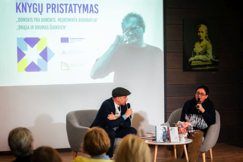 Bibliotekoje pristatytos knygos „Donskis yra Donskis. Neįrėminta biografija“ ir „Drąsa ir orumas šiandien“. J. Donskienės teigimu, pirmoji, išleista 2025 m., turi unikalią atsiradimo istoriją.